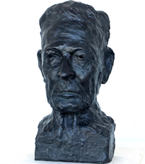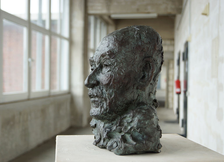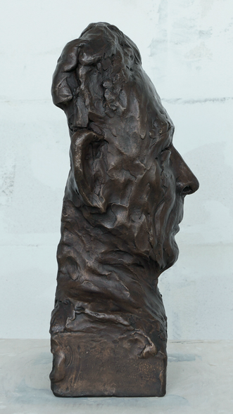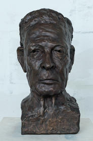 Porträtbüste in Auftrag, Tonmodell in Düsseldorf erstellt, Bronzekopf gegossen in der Bildgießerei Noack, in Berlin.